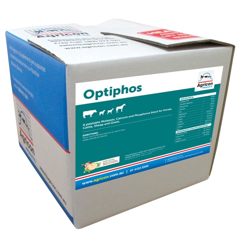 Optiphos is a phosphorus mineral block containing Vitamin A and trace elements