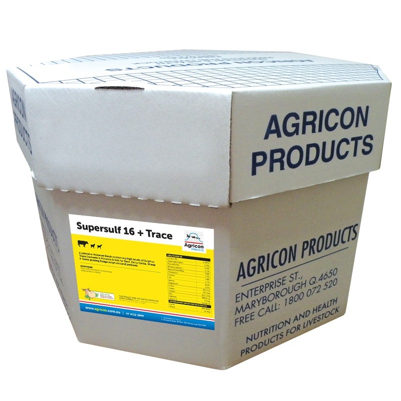 Supersulf 16 + Trace is a palatable molasses block with 16% sulphur and trace elements